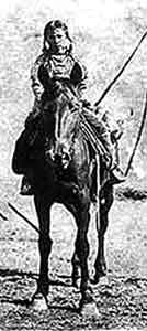 Tashunca Uitco alias Crazy Horse was born as an Oglala Sioux around 1844 in South Dakota. As a child he looked little like the rest of his people. In fact his hair was so light and wavy, that many a white settler, who saw him playing along the Oregon trail, thought he was a white captive living among the Indians. Grown up, Tashunca became a popular leader of war parties and respected by his people. But his real heroism came in 1876, when he led the Sioux to the Battle of the Little Big Horn.